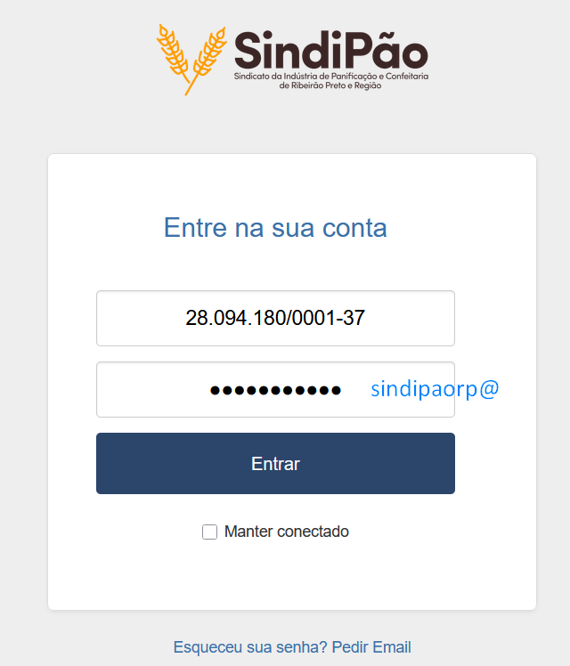 3º Passo - Senha de primeiro acesso: sindipaorp@