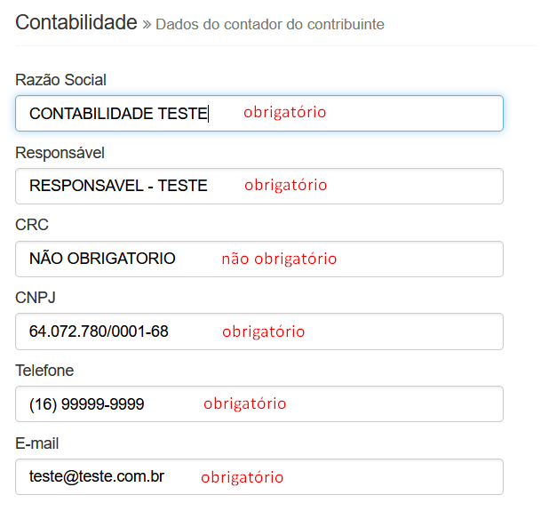 8º Passo - Preencher dados contabilidade