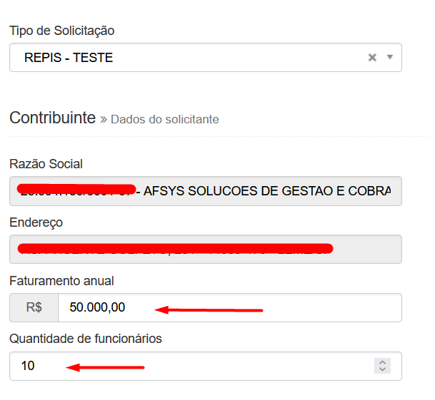 • Solicitação repis