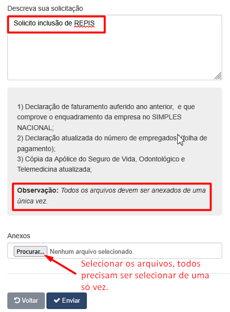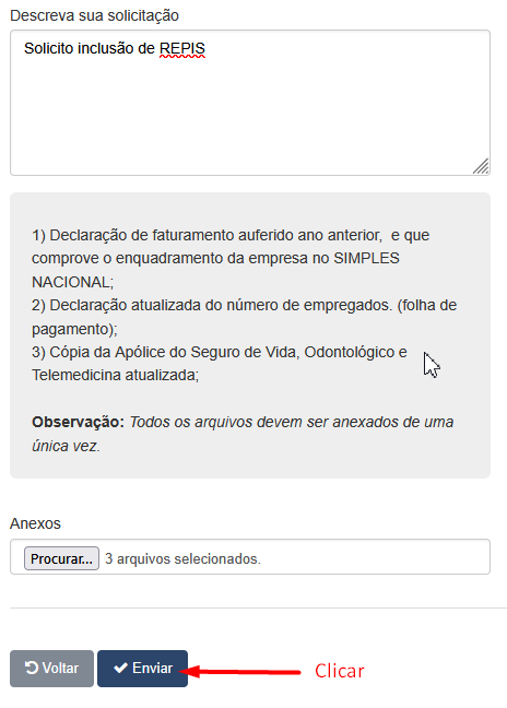 11º Passo - Enviar todos os arquivos solicitados.